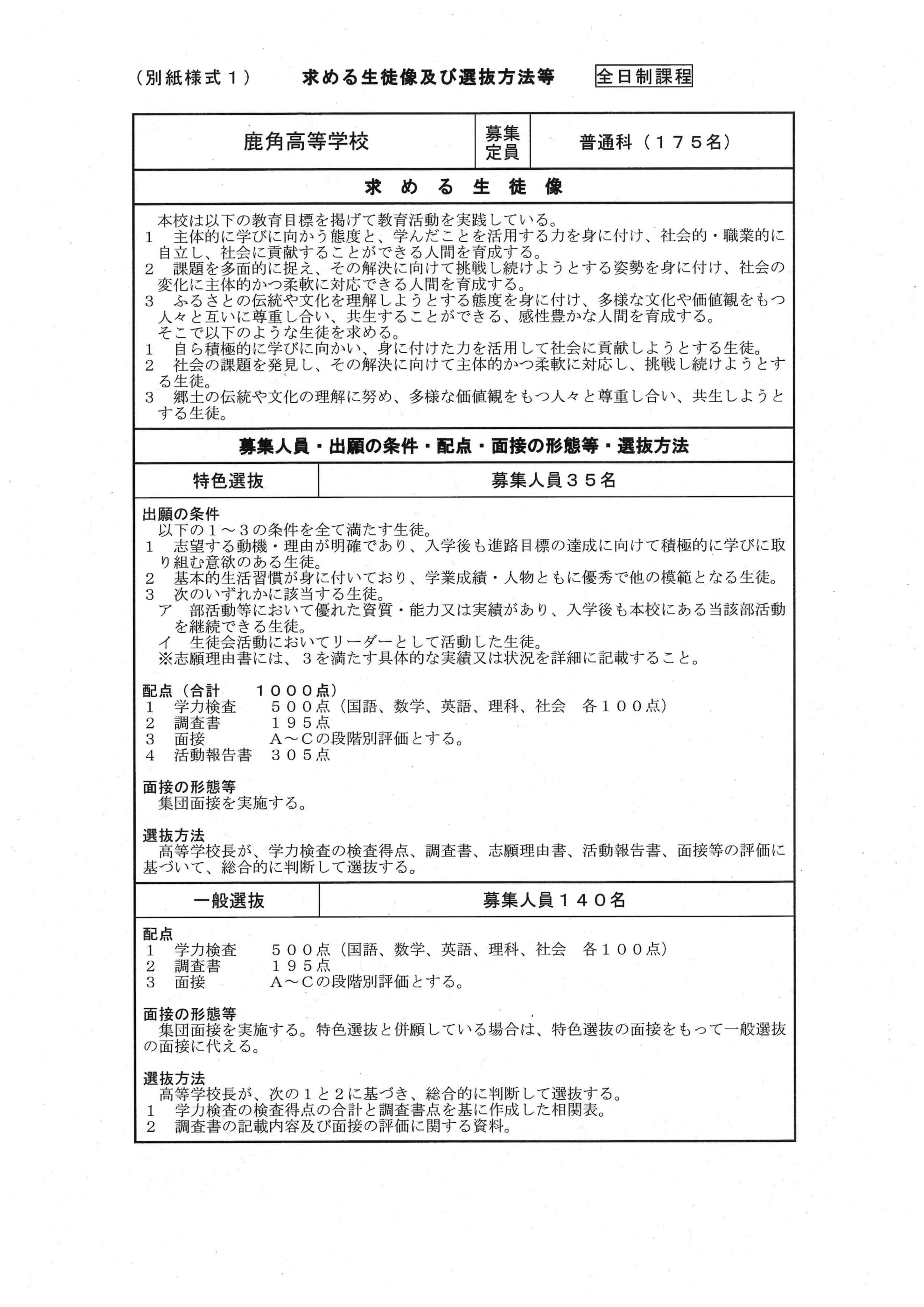 | 令和8年度秋田県公立高等学校入学者選抜について 学校名 秋田県立鹿角高等学校 |